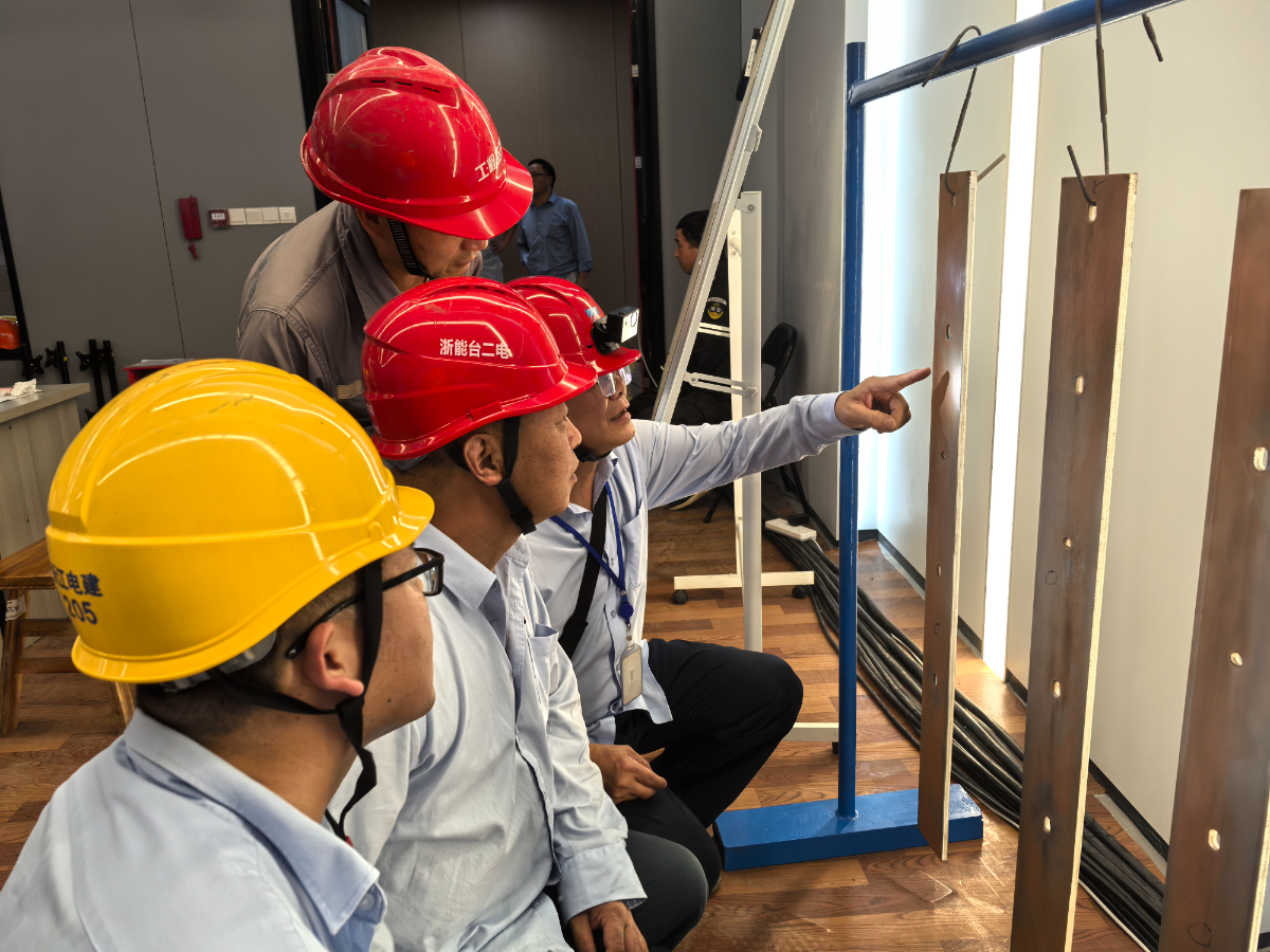 浙能臺二電二期專業人員檢查靶板品質。 劉凱銳 提供